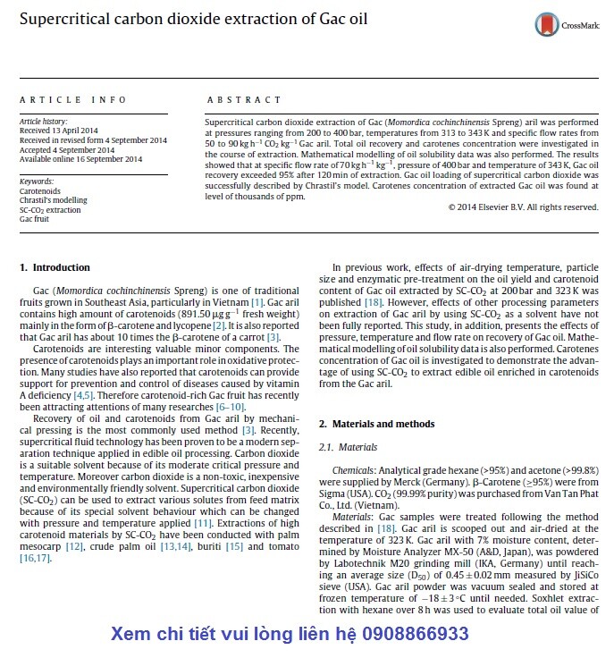 Chiết xuất dầu Gấc bằng công nghệ CO2 siêu tới hạn