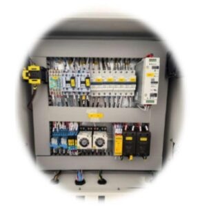 - Panel with industrial-grade colored LED indicators, providing visual and audible signals to indicate the status of the machine and its respective processes.