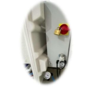 - Solution tank levels, deionized water in the saturator tower, and water jacket levels are located on the front side and are easy for the operator to view, in addition to having electronic safety level controls.