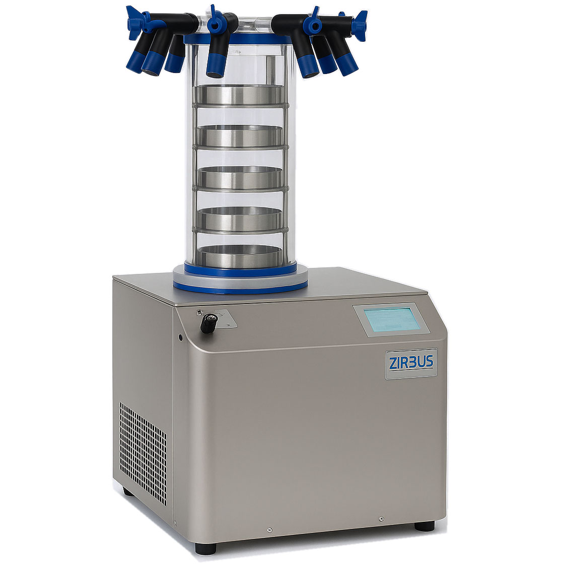 Máy đông khô ( sấy thăng hoa) Laboratory Freeze Drying Unit Sublimator 5 của hãng Zirbus Germany sử dụng trong phòng thí nghiệm, sản xuất thử và sản xuất. Từ khóa: máy đông khô, máy đông khô thí nghiệm, máy đông khô pilot, máy đông khô sản xuất thử, máy sấy thăng hoa, freeze dryer...