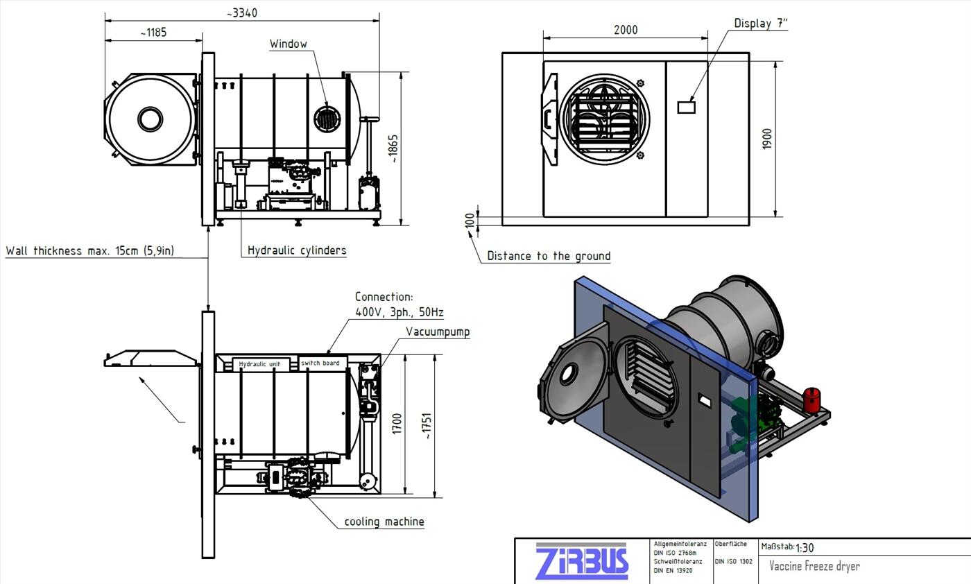 Máy đông khô sublimator 80-3 của Zirbus Germany sử dụng đông khô và đóng nắp lọ Vacxin. Máy với diện tích kệ 3m² và khả năng đông đá 80kg. Hệ thống đông khô Vacxin này có bao gồm làm sạch tại chỗ tự động(CIP) và tiệt trùng tại chỗ tự động(SIP). Tất cả hệ thống phù hợp với GMP.