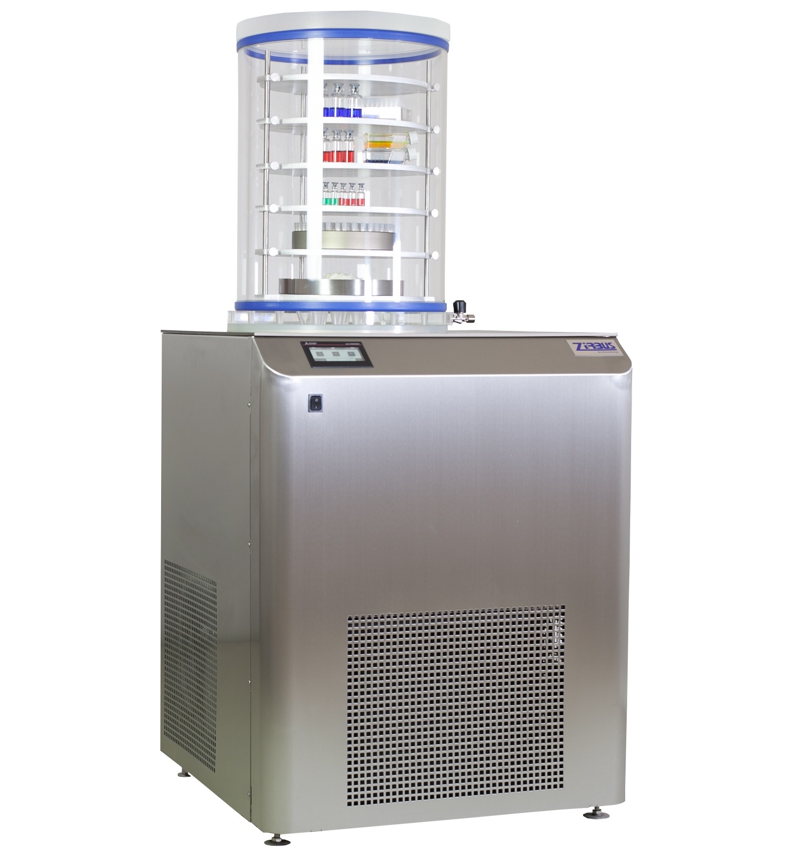 Máy đông khô 50EKS của Zirbus với diện tích khay 5.13m2, ngưng tụ đá Max. 75 kg. Sử dụng trong sản xuất đông khô Thực phẩm rau, củ, trái cây, dược thảo, thuốc, chế phẩm sinh học... Còn gọi là máy sấy thăng hoa 50EKS.